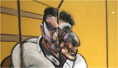 Freud’s face is a distorted blob, as if, instead of Freud as a sitter, Bacon was in lurid fashion painting the Elephant Man. Actually, if one had not been told, one would have no idea who the sitter was. It could have been almost anyone – a stranger off the street. And here we have the key to this work. For who tells us that this is Freud? It is Francis Bacon, the artist.