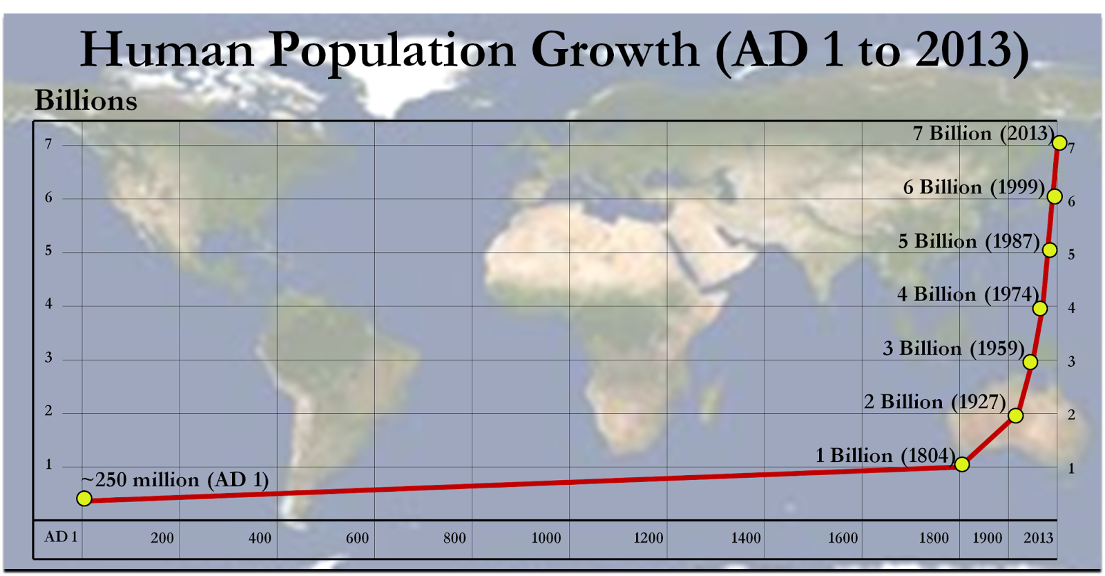 Unfortunately, too many people have taken the failure of Malthus’s predictions to somehow prove that human population growth is not a problem. Population growth is always a factor that depresses the average standard of living. One can explain the relation between population and living standards with an equation: (level of technology x natural resources) / human population = standard of living.
