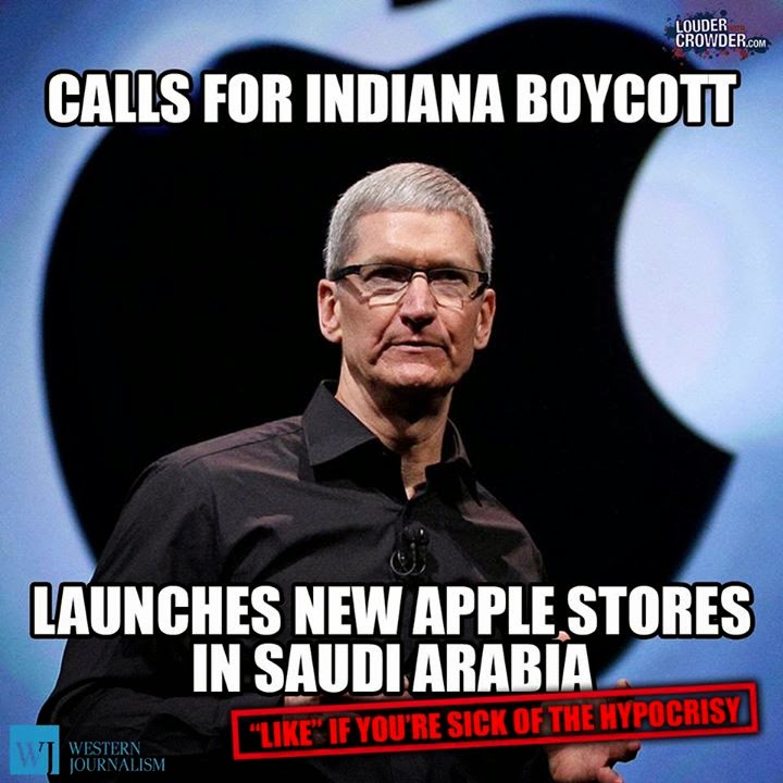 Companies knew they had nothing to fear and everything to gain by opposing the Christian Conservative position. They didn't even feel the need to remain neutral. One of the most prominent memes doing the rounds in the last few days has been this one featuring Tim Cook the CEO of Apple, whose company came out against the new laws.
