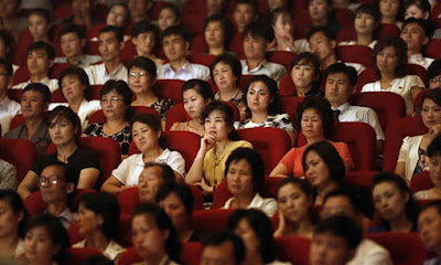 Thus, the mutually-reinforcing surrealities of Laibach playing Pyongyang are quite satisfactory, even if (judging by this photo) the sublime syncronicity has clearly been lost upon most of the attendees of the event. Then again, perhaps in that "inscrutable" Asian way, they do "get it," even if they seem not to.