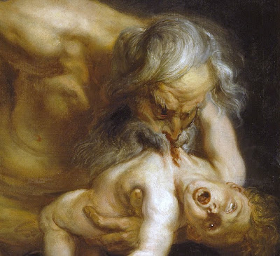 In this way the chasm opened by Dionysian experience may alter the normal course of time, persuading men to go against time. Instead of Cronus devouring his children as the normal course of time – Dionysus is eaten as a possible precursor to the Eucharist, symbolic of the end of the communal feast and carnival itself, and the closing of the pagan world. Thus when carnival stops, lent begins.