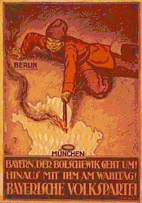 In December, there was an outbreak of fighting in Berlin, between the People's Navy Division, a force composed of revolutionary sailors that had ended up being stationed in Berlin, and troops supposedly loyal to Ebert’s government. Although the fighting proved inconclusive, it pushed Ebert’s government closer to the Freikorps movement, composed of former soldiers, who supported the old order. The Soviet revolutionary tendency was embodied in the Spartacist Movement and the Bavarian Soviet Republic. As a side note, it appears that the future Nazi leader, Adolf Hitler, may have been loyally serving in a "Red Unit" under the control of the Munich Soldier's Council in the Bavarian Soviet Republic at this time.