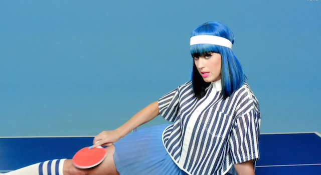 Finally, observe this expose of Katy Perry’s video for her 2014 single “This Is How We Do.” (Perry started out as an adolescent Christian contemporary singer before, in her own words, “selling her soul to the Devil.”) The video features a dancing piece of pizza and in it, Katy sports a bathing suit with a pizza design. She also sprawls atop an, ahem, ping pong table: