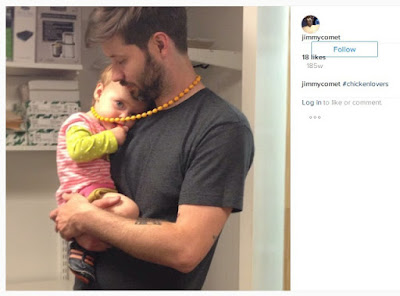 | A picture of a man with a child, hashtagged with the pedo-slang "chickenlovers" |