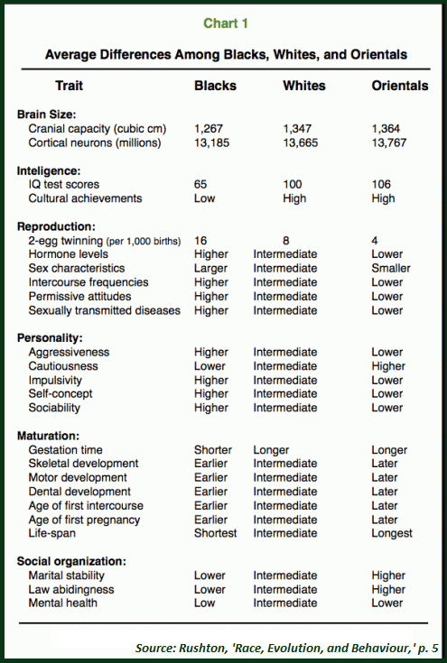 In other words, giving a black person an IQ test is like asking a stork to drink out of a flat bowl--Nature has just not equipped him to handle it.
