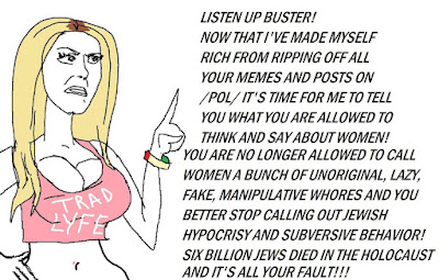 I will share only one story to show what WN 1.0 was like. On a certain large white nationalist forum, there was a very popular user named CelticMaiden88. Basically, most of the guys white knighted her on a regular basis, and she always got in the last word on any topic because she was strong on the holy trinity of WN 1.0: hate Negroes, blame Jews, and support government welfare and entitlements because half of the forum was on those anyway.