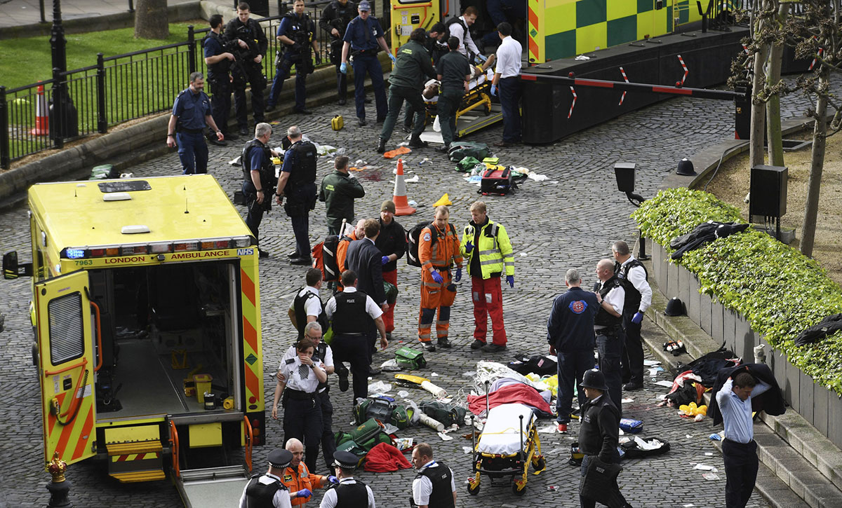 The attack started on Westminster Bridge, with a car driven by the attacker mowing down people on the sidewalk (or pavement, as it is called in England).
