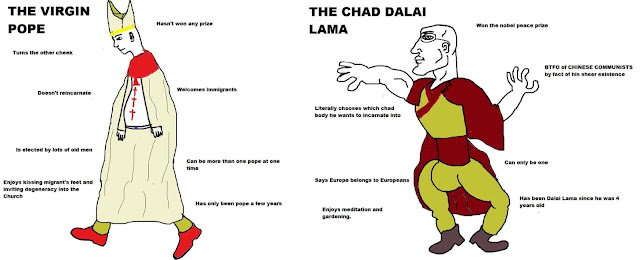 Now the Dalai Lama, who apparently deserves whatever salary he gets as a world religious leader, mentions the obvious: Europeans are a distinct group, and they need to have their own future instead of sacrificing themselves on the altar of Leftist ideology, mainly because that "old fashioned" way of living works, whereas the "new way" is a path to guaranteed instability, all in the name of power, an old and bad human addiction.