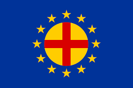 The actual plan that Kalergi was involved with was the one he's still remembered for—a kind of prototype of the European Union, which didn't say anything about mixing in the brown hordes and even had a nifty Eurocentric flag like this: