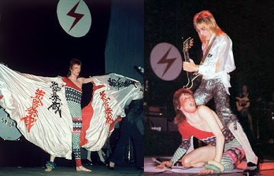Definitely not a coincidence. Then there is the lightning flash mark, a symbol of fascism, that was used for Aladdin Sane, as well as the SS symbols he used onstage for the Ziggy Stardust tour: